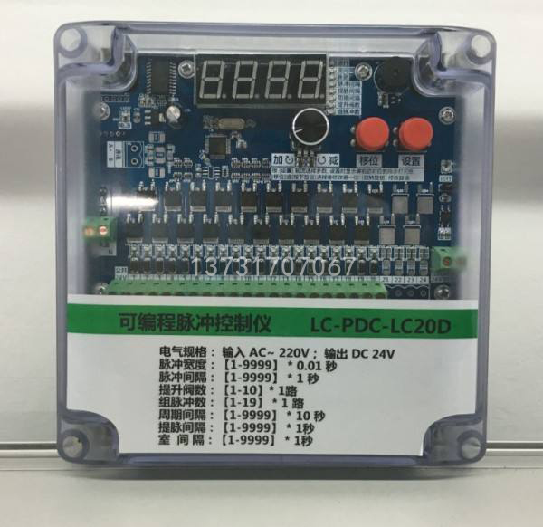 1、可根據(jù)清灰要求,調(diào)整循環(huán)間隔、脈沖間隔和脈沖寬度,控制電磁脈沖閥的開啟和關(guān)閉,對除塵器實行定時清灰。同時設(shè)有壓差控制儀輸入接點(diǎn),接上壓差控制儀后可以定壓差清灰。